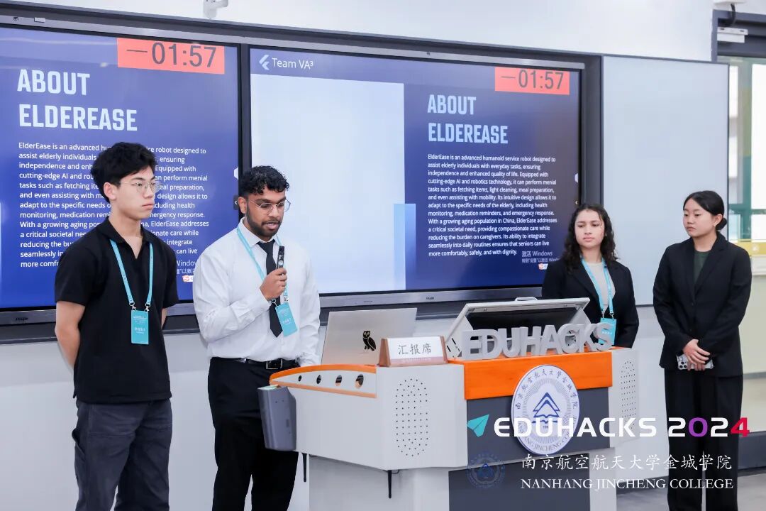 EduHacks国际大学生创客马拉松大赛始创于2017年,是一项享誉海内外的国际创新赛事,赛事合作伙伴包括Adobe、微软等国际知名企业,和美国华盛顿大学、英属哥伦比亚大学、澳大利亚悉尼大学、新南威尔士大学等世界名校。EduHacks品牌历时八年,持续推进科技创新,助力教育高质量发展。往年的比赛因疫情影响等各种原因,中美大学生只能以线上参与的形式进行,今年南航金城学院为增强科技交流的效果和体验感,联合HackHub黑咖创客共同组织邀请了美国南加利福尼亚大学、加拿大滑铁卢大学、加拿大西安大略大学、美国西部州长大学、美国埃弗利特大学5所北美大学的10名师生前来中国南京参加科技比赛,参与本次大赛的美国和加拿大学生都是第一次来到中国。
