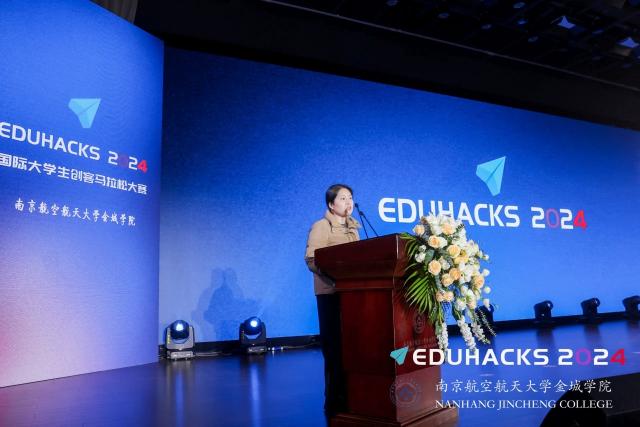 “EduHacks 2024国际大学生创客马拉松大赛是南航金城学院主动服务国家战略、支撑区域经济发展和产业转型升级、培养高素质的创新性应用型人才的重要实践。”中国创造学会副理事长、东南大学教授张志胜表示,通过大赛,看到了一个个令人惊叹的创意在南航金城学院生根发芽,选手们不拘泥于传统,敢于突破常规,从智能科技到人文关怀,从环保理念到技术革新,每一个项目都闪烁着创新的光芒,与党的二十大提出的高质量发展同向而行,践行着“我们创造美好生活”这一大赛主题。