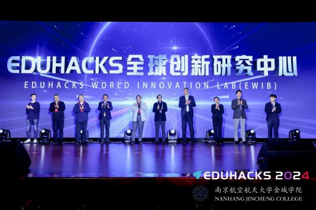 借助本次大赛的契机,在社会各界的广泛关注下,俄罗斯工程院外籍院士、东南大学教授夏志杰,南航金城学院理事长曹忠葆,南航金城学院校长陈旭,中国创造学会副理事长张志胜,南航金城学院党委书记戴泉晨,全国机械设计大赛秘书长王晶,美国索菲亚大学中国首席代表刘地文, HackHub 联合创始人、COO 王啸尘,江苏省学生联合会会员单位代表、南航金城学院学生会执行主席王秉天等共同为EduHacks全球创新研究中心成立揭幕。EduHacks全球创新研究中心,汇聚全球高校,搭建全球青年创客们创新竞赛平台,为新发展理念下的创新人才提供中国方案和国际范式。